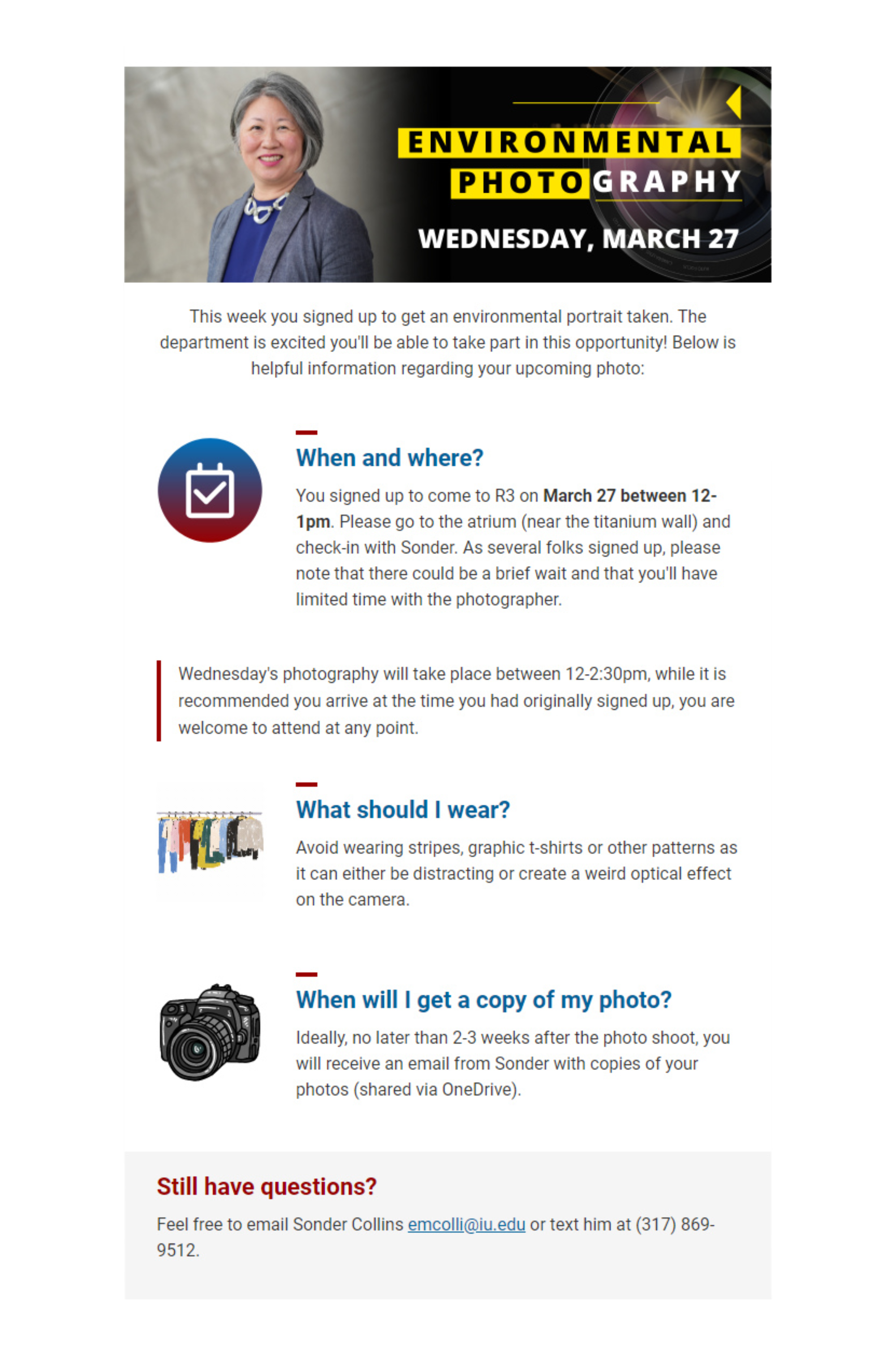 A constant battle for one of my clients included a lack of high-quality portraits of faculty members. Having these images was crucial for storytelling, digital presence, and potential press releases. To help us get ahead of the curve, I organized annual portrait days for experts to get free, professional environmental portraits. This project was a big success, with dozens of people signing up. As a result we were able to update experts bios and have better imagery for future stories. Since this proved to be beneficial, I organized another successful photography event in 2024. Without the targeted messaging I used, this effort wouldn’t have worked and the department would be without key imagery.