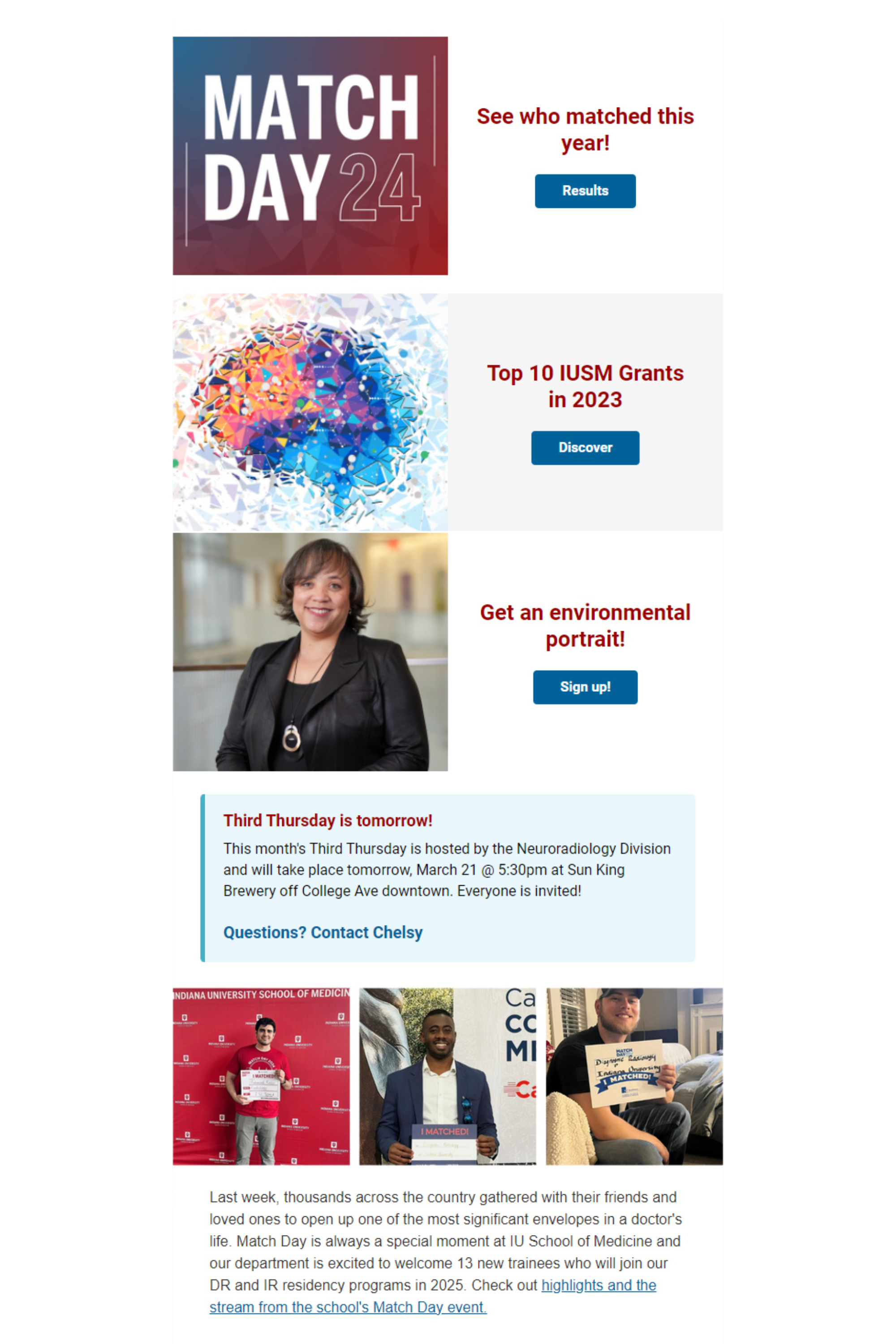 During my tenure at Indiana University School of Medicine, I honed my expertise in digital communications, particularly in leveraging Salesforce Marketing Cloud, for effective messaging. I revolutionized email communications for my clients, transforming them from a neglected channel into a highly valued asset. Previously, my clients relied on basic listserv communications or lengthy Word documents for important updates, which often hindered engagement or made it time consuming to learn area updates. By integrating Marketing Cloud, I ensured that email lists were meticulously maintained and collaborated with area and school leaders on how email analytics provided valuable insights into audience engagement.